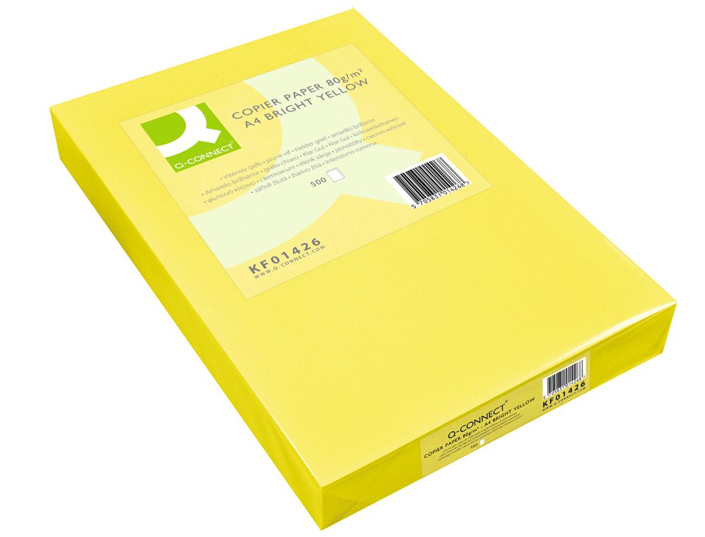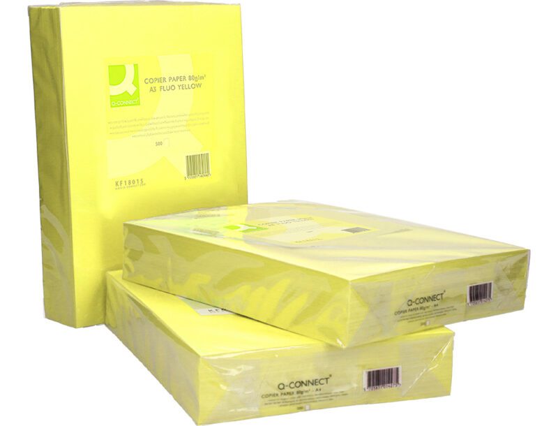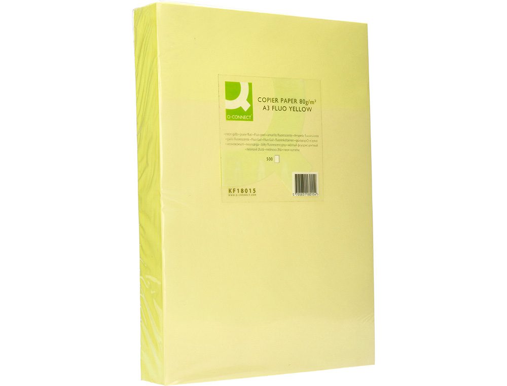 Papel De Cor Q-Connect Din A3 80 Gr Amarelo Neon Embalagem De 500 Folhas