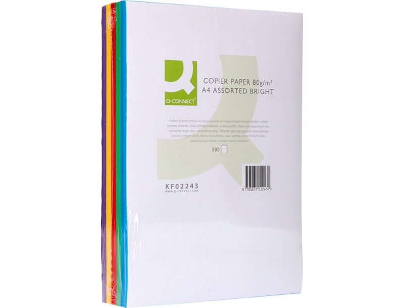 Papel De Cor Q-Connect Din A4 5 Cores Sortidas Embalagem De 500 Folhas