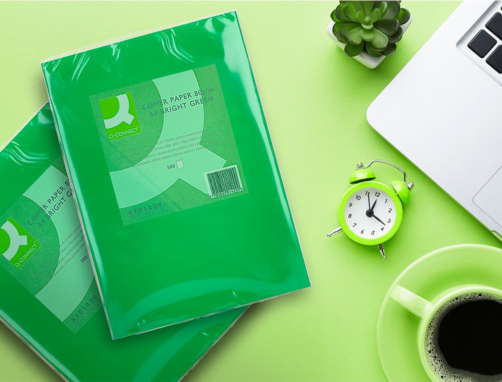 Papel De Cor Q-Connect Din A4 80 Gr Verde Intenso Embalagem De 500 Folhas