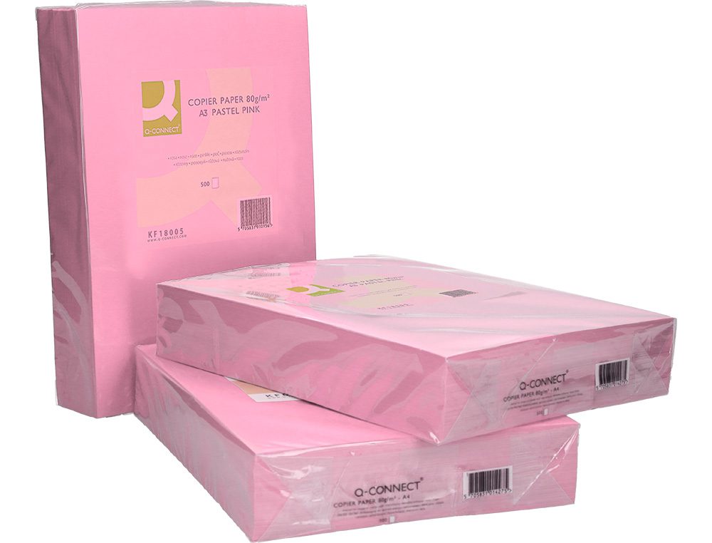Papel De Cor Q-Connect Din A3 80 Gr Rosa Embalagem De 500 Folhas