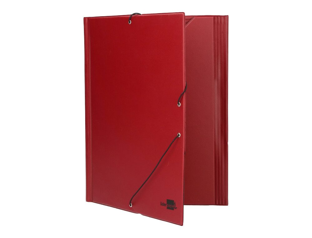 A pasta LIDERPAPEL com fecho de borracha e abas de plástico na elegante cor bordeaux é a solução ideal para manter os seus documentos organizados e seguros. O seu design resistente e funcional é perfeito para ambientes de escritório, estudo ou uso pessoal, proporcionando um toque profissional e sofisticado.