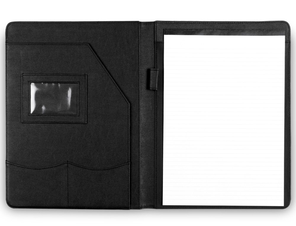 - Departamentos internos: Inclui bloco de notas, identificador de cartões, suporte para caneta e bolso com pala.