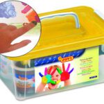 Caixa De Pintura A Dedos Que Contém: 6 Frascos De Cores De 125 Ml (Amarelo, Azul, Branco, Castanho, Vermelho E Verde), 4 Esponjas, 4 Templates E 1 Rolo. O Conjunto.