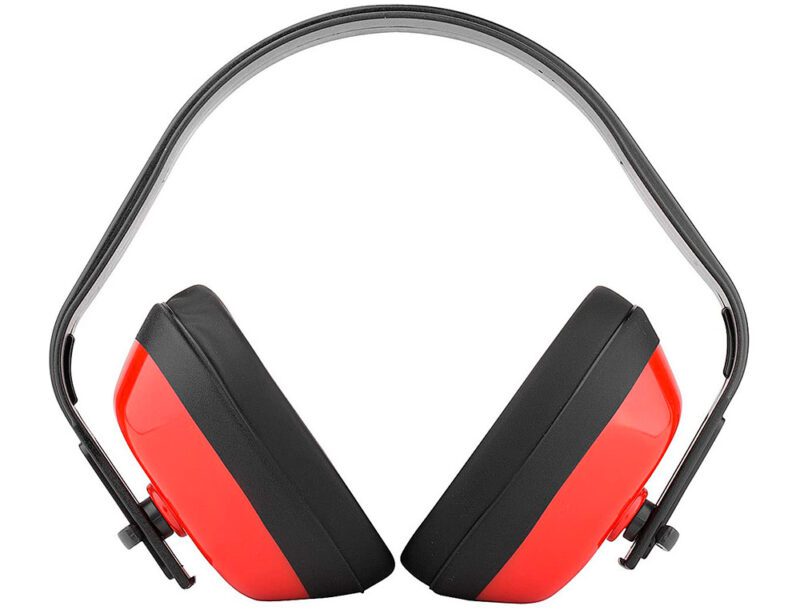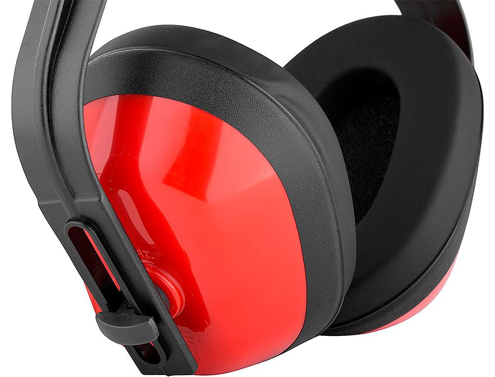 Protetor auditivo básico, regulável em altura. Livre de partes metálicas. Leve e resistente. Cor vermelha. O protetor.