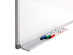 Quadro para marcadores de apagar a seco. Superfície laminada branca. Moldura em alumínio prata mate e cantos redondos de plástico cinza claro. O seu acabamento permite apagar com maior facilidade sem que fiquem marcas. Inclui kit de fixação à parede. Utilizar só marcadores para quadros brancos. O seu tamanho e características são ideais para centros de formação: escolas, institutos, universidades, etc. O quadro.