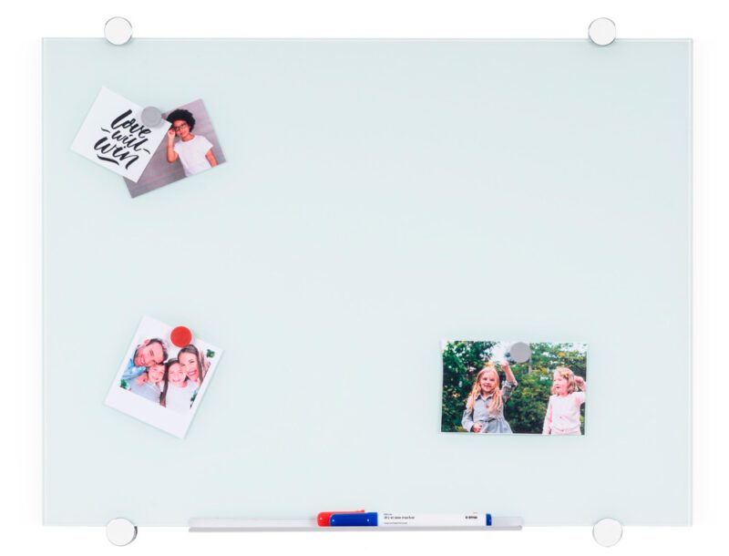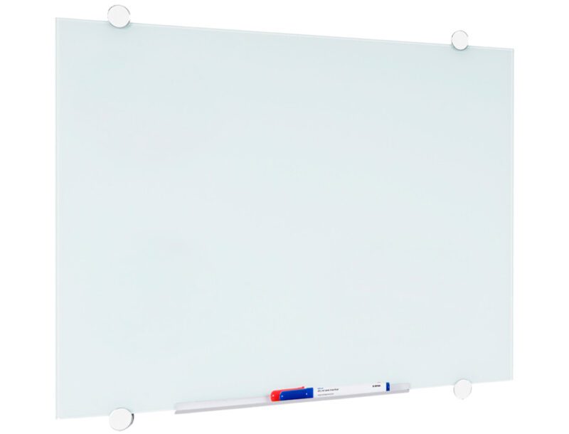 Quadro de vidro temperado de 4 mm. Superfície de alta qualidade que permite uma escrita fácil e suave. Magnético. Cor branca. Marcador preto, apagador e 2 ímanes incluídos. Inclui kit de fixação à parede. Medidas: 90 x 60 cm. O quadro.