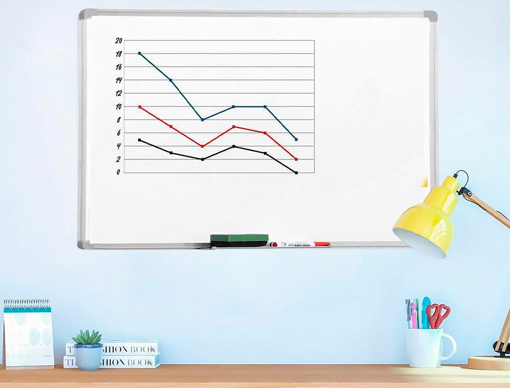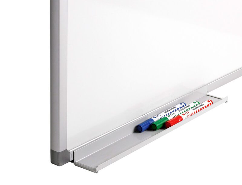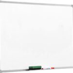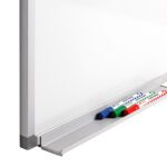 Superfície lisa. Com moldura em alumínio. Utilizar apenas marcadores especiais para quadros brancos. Inclui kit de fixação à parede. O quadro.