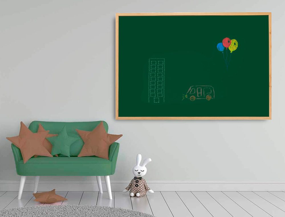 - Superfície de escrita: Revestida com tinta especial que permite um fácil apagamento, ideal para a utilização de giz.