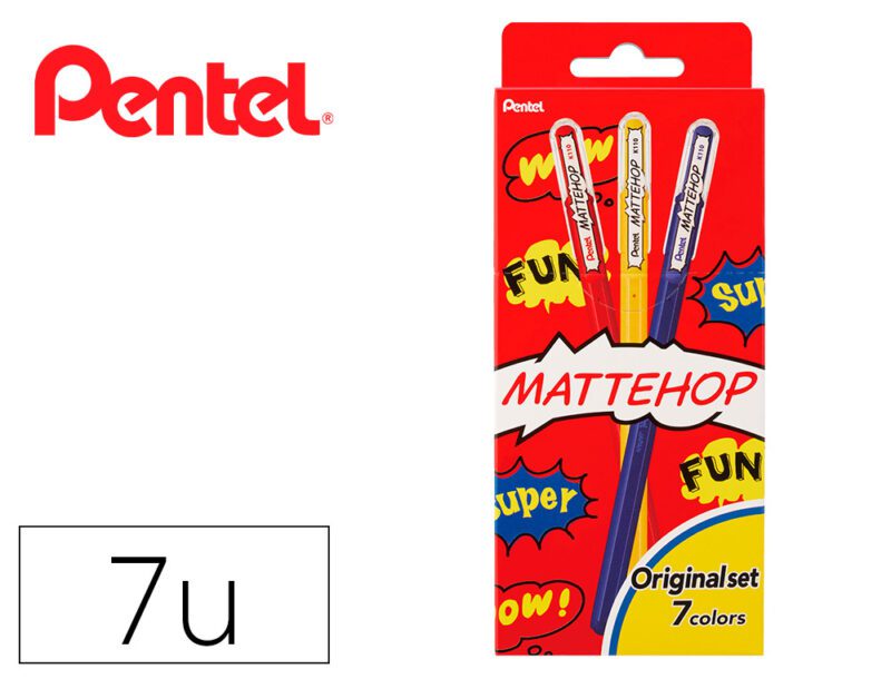 Roller gel Pentel K110 Mattehop, conjunto de 7 cores originais.