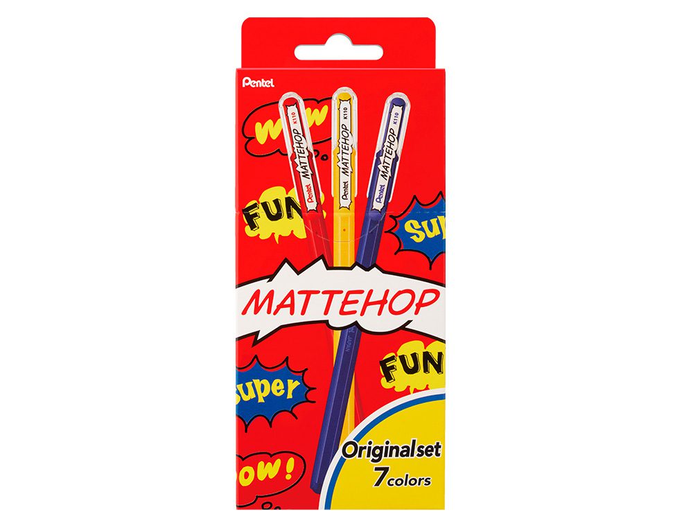Roller gel Pentel K110 Mattehop, conjunto de 7 cores originais.
