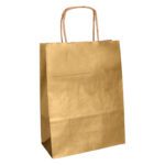 O saco de papel Q-CONNECT em kraft dourado com pegas torcidas é a escolha ideal para quem procura uma solução elegante e prática para o transporte de artigos de gama média. Com o seu design elegante e ecológico, é perfeito para lojas, eventos e muito mais.