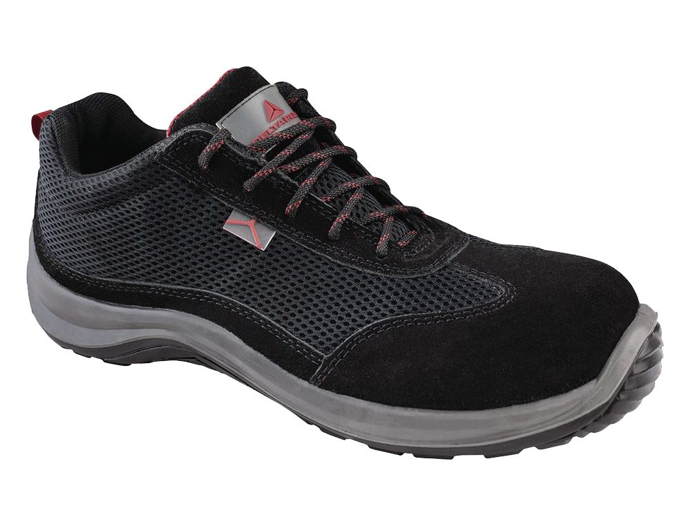 Calçado com camurça e malha. Forro: Poliéster. palmilha: removível – Poliéster em EVA. Sola: injetada – PU bi-densidade. Sola Pu de dupla densidade: Amortecimento reforçado. Grande resistência à abrasão. Ponta resistente a impactos. Não condutor de calor nem frio. Uso profissional. Antiestático e antiderrapante. Não magnético. Cor preta.
