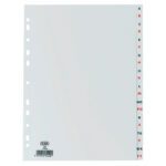 O Divisor Alfabético de plástico ELBA é a solução perfeita para manter os seus documentos organizados. Concebido com 120 microns de espessura e 11 furos, este divisor DIN A4 é durável e compatível com uma vasta gama de pastas e arquivos. O seu sistema de organização AZ é ideal para facilitar a pesquisa rápida de documentos em ambientes profissionais e pessoais.
