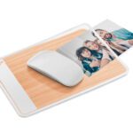 Transforme o seu espaço de trabalho com este inovador tapete de rato, concebido para oferecer um equilíbrio perfeito entre funcionalidade e sustentabilidade. A sua superfície em bambu, complementada por uma aba antirreflexo, além de proteger documentos importantes, confere um toque de elegância natural ao ambiente.